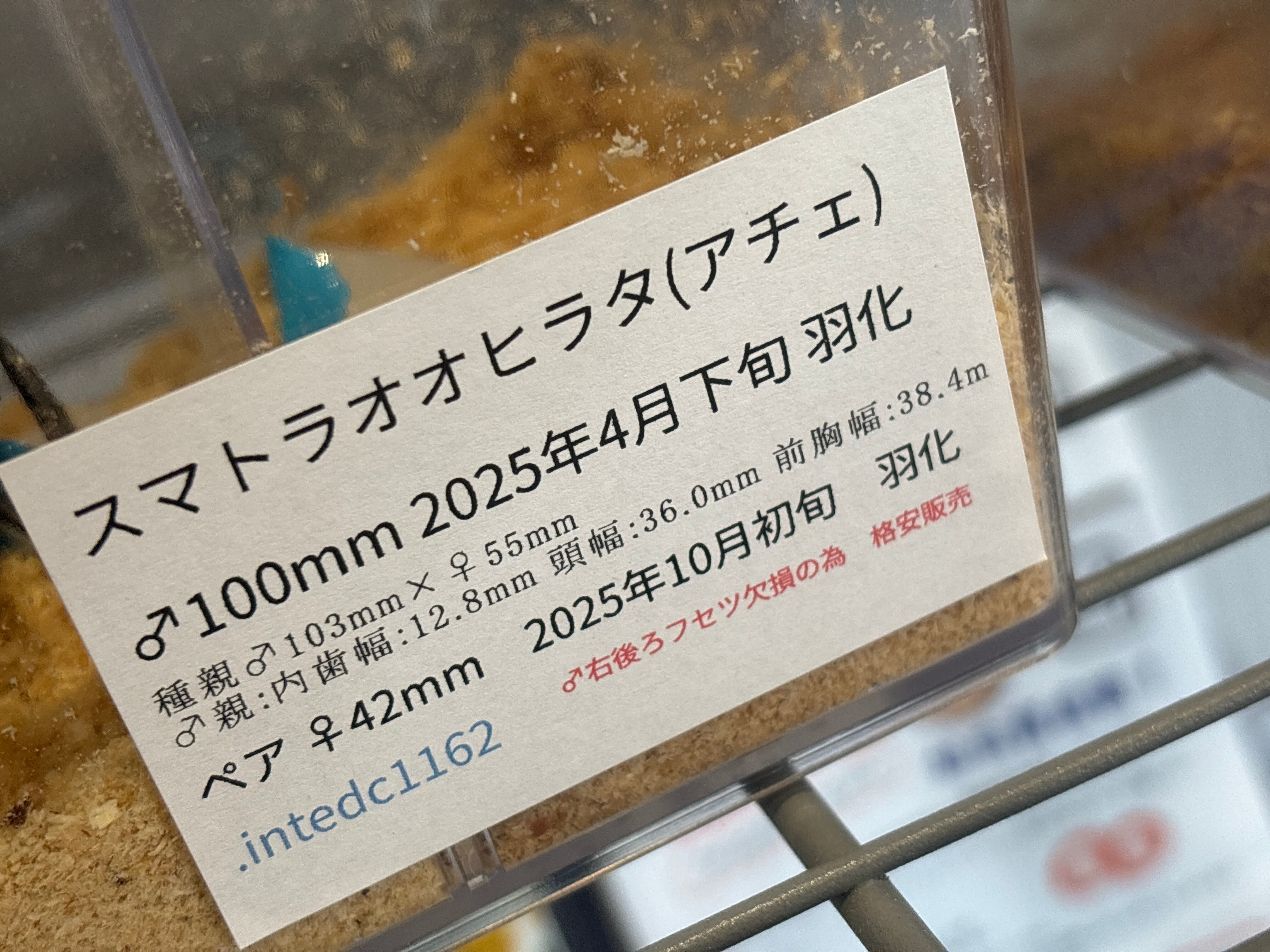 B品 スマトラヒラタ100mm ペア アチェ